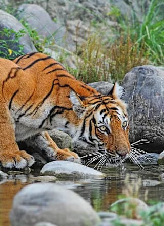 Wusstest du, dass Nepal auch Tiger hat? Der Chitwan Nationalpark liegt drei Stunden südlich von Kathmandu – subtropischer Dschungel auf 100 Metern Höhe, wo Panzernashörner durchs Elefantengras trampeln und Bengaltiger durch Sal-Wälder streifen. Du fährst im Kanu den Rapti River entlang, Krokodile liegen regungslos am Ufer, Eisvögel schießen vorbei. Auf dem Weg dorthin lohnt ein Stopp in Gorkha: Die Stadt thront auf einem Felsrücken, 1.400 Meter über dem Tal, und hier begann Nepal wie du es kennst – der Gorkha Durbar klebt an Felswänden, von oben reicht der Blick bis zum Manaslu. Vom Himalaya-Giganten in den tiefen Dschungel, von Tempeln zu Tigern – diese Kombination bekommst du nur in Nepal.